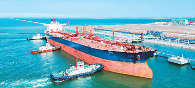東營海關(guān)數(shù)據(jù)顯示,今年上半年,山東省東營市東營港進(jìn)出境貨運(yùn)量807.3萬噸、貨值344.7億元,同比分別增長492.2%、556.5%。圖為7月30日,東營港10萬噸級碼頭,進(jìn)口貨輪經(jīng)海關(guān)監(jiān)管后,駛出碼頭。