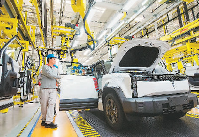 今年上半年,安徽省蕪湖市出口電動載人汽車數(shù)量1.49萬輛,同比增長144.3%。圖為在蕪湖市奇瑞新能源愛咖生態(tài)科技有限公司新能源汽車生產(chǎn)車間,工人在進(jìn)行組裝生產(chǎn)作業(yè)。