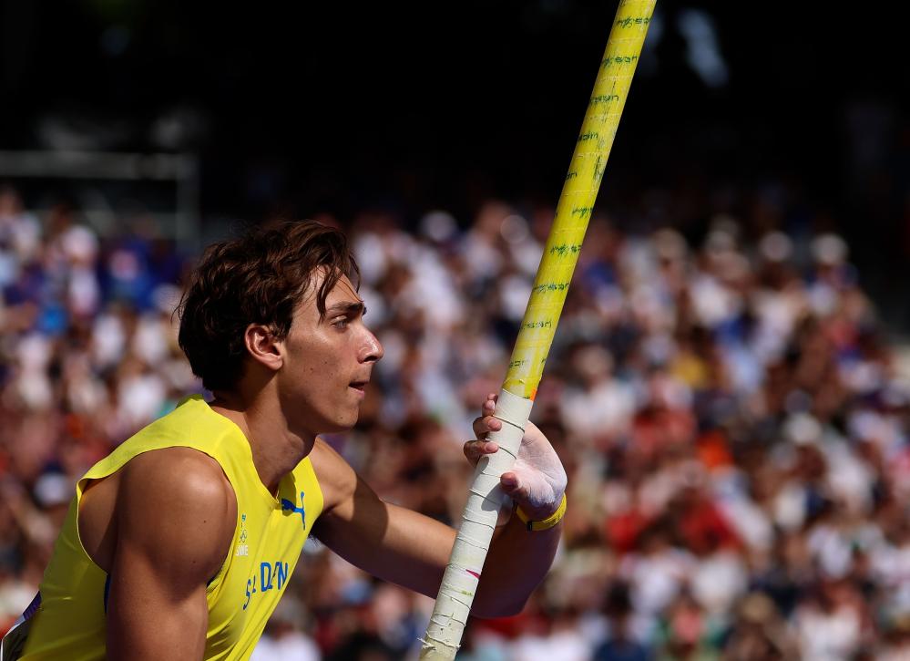 8月3日,瑞典選手杜普蘭蒂斯在比賽中。新華社記者 李明 攝