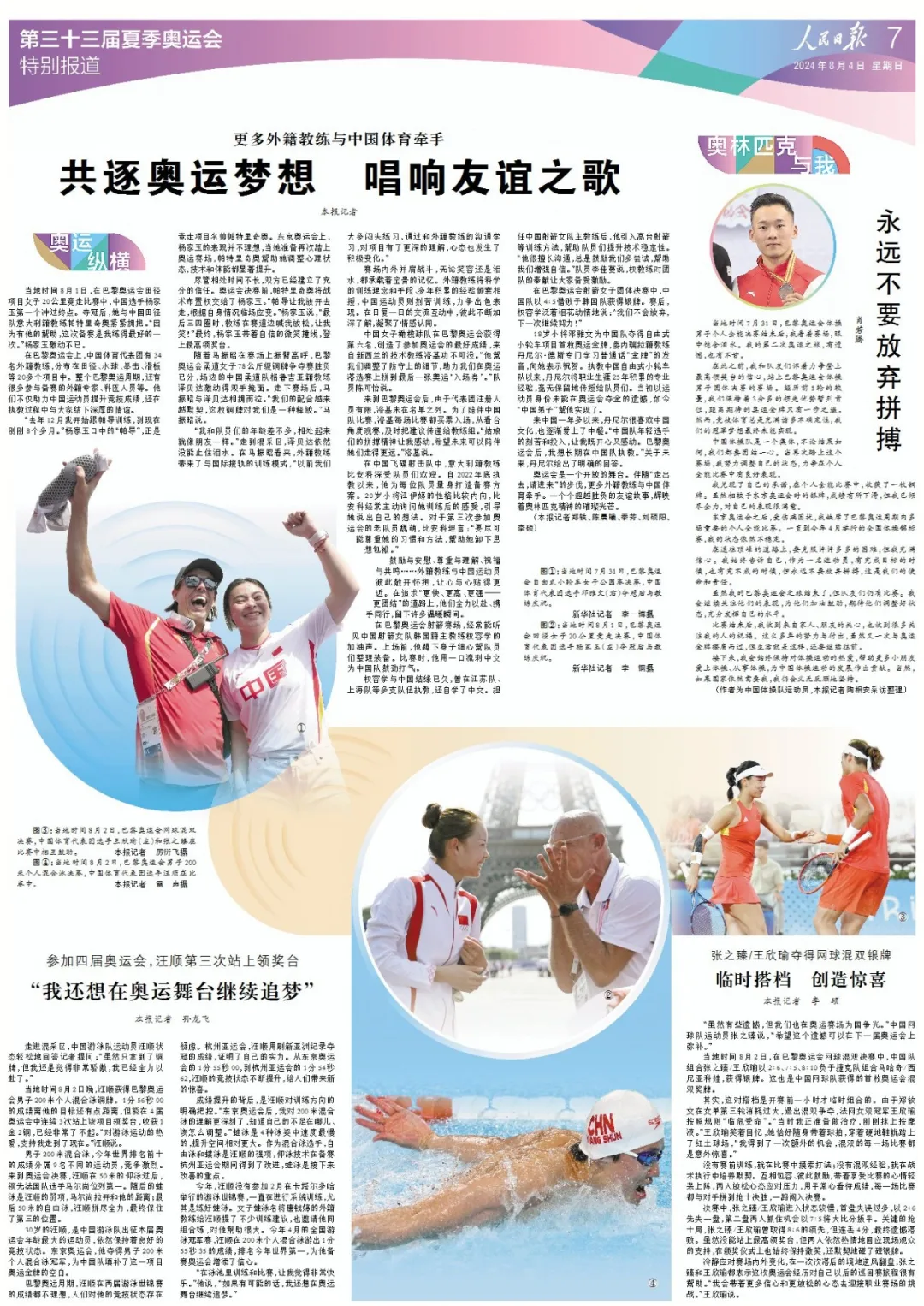 在巴黎奧運會上,中國體育代表團有34名外籍教練,分布在田徑、水球、拳擊、滑板等20多個項目中。整個巴黎奧運周期,還有很多參與備賽的外籍專家、科醫(yī)人員等。他們不僅助力中國運動員提升競技成績,還在執(zhí)教過程中與大家結(jié)下深厚的情誼。