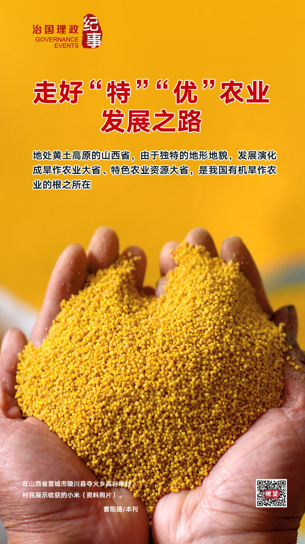 ◇2020年5月,習(xí)近平總書記在山西考察時強(qiáng)調(diào),山西山多地多、地貌多元、氣候多樣,這種獨(dú)特的資源稟賦決定了山西農(nóng)業(yè)的出路在于“特”和“優(yōu)”。要深入推進(jìn)農(nóng)業(yè)供給側(cè)結(jié)構(gòu)性改革,提高農(nóng)業(yè)綜合效益和競爭力。