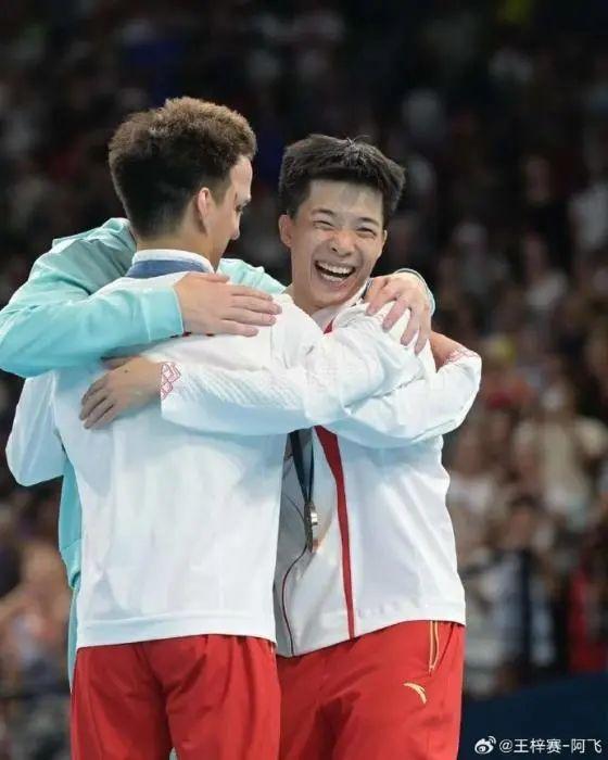 男子蹦床決賽,中國選手王梓賽和嚴(yán)浪宇分別獲得銀牌和銅牌。也許是因為遺憾,第一次參加奧運會的王梓賽留下了眼淚。來自白俄羅斯的金牌得主伊萬-利特維諾維奇穿越大半個場館,來到王梓賽身邊,給了他一個大大的擁抱。