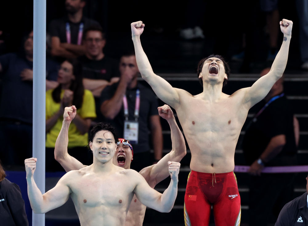 巴黎奧運(yùn)會(huì)游泳賽場(chǎng)最后一個(gè)比賽日,男子4X100米混合泳接力決賽,當(dāng)潘展樂(lè)完成反超,幫助中國(guó)隊(duì)力壓壟斷該項(xiàng)目40年的美國(guó)隊(duì)和占盡主場(chǎng)優(yōu)勢(shì)的法國(guó)隊(duì),以3分27秒46的成績(jī)奪冠時(shí),現(xiàn)場(chǎng)的歡呼聲達(dá)到了頂峰。