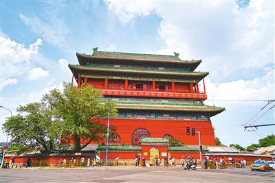 北京中軸線上的鼓樓?! ∷渭胰鍞z(人民視覺)