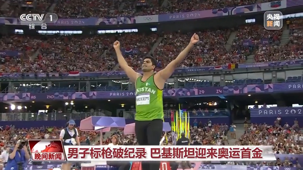 男子標(biāo)槍決賽中,巴基斯坦選手納迪姆在第二投投出92米97,將原先90米57的奧運會紀(jì)錄提高了兩米多。最終,他憑借這一成績拿到金牌,這也是巴基斯坦在本屆奧運會上獲得的首枚獎牌。