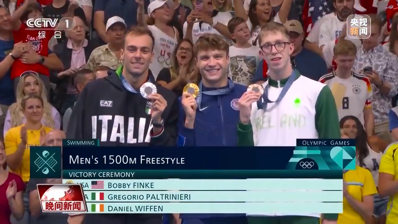 游泳項目,速度比拼。男子1500米自由泳決賽,身處第7道的美國選手芬克,從一入水就處于領(lǐng)先的位置,最終以14分30秒67觸壁,獲得冠軍的同時,也打破了世界紀(jì)錄。