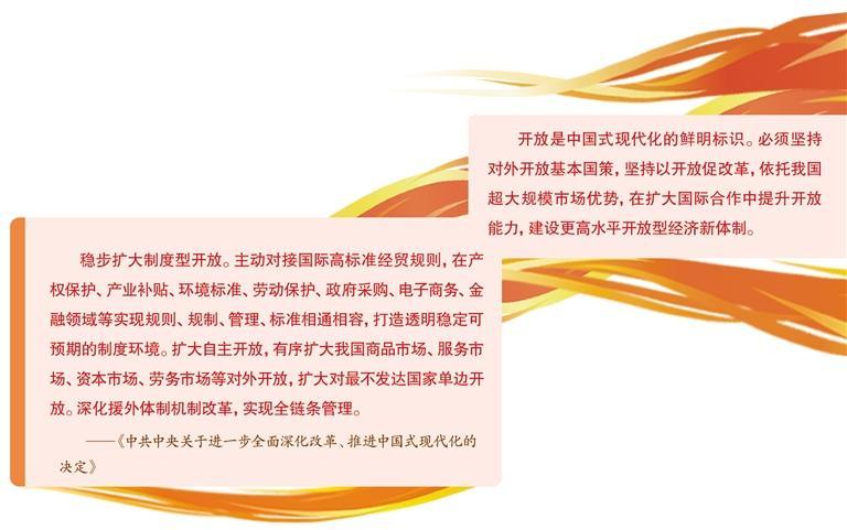 《決定》提出“穩(wěn)步擴(kuò)大制度型開(kāi)放”,要求主動(dòng)對(duì)接國(guó)際高標(biāo)準(zhǔn)經(jīng)貿(mào)規(guī)則。《決定》作出的一系列重要部署影響廣泛、意義深遠(yuǎn)。