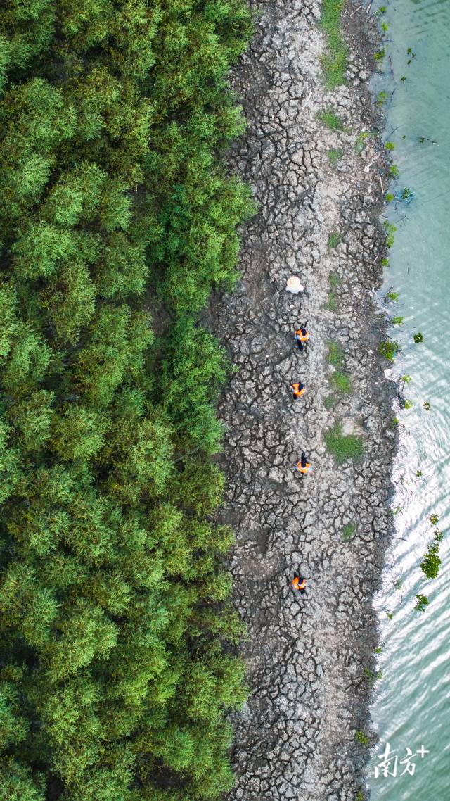 說(shuō)話間,大家伙各就各位、有序分工,拍照的拍照、記錄的記錄。“樹寶寶”配合地排排立正,在風(fēng)中“搖頭晃腦”。此時(shí),“技術(shù)控”李明霖飛起一架無(wú)人機(jī),從高空拍下“大合影”和視頻,解釋道:“后續(xù)還要比對(duì)片區(qū)紅樹林總體長(zhǎng)勢(shì)變化?!?/strong>
