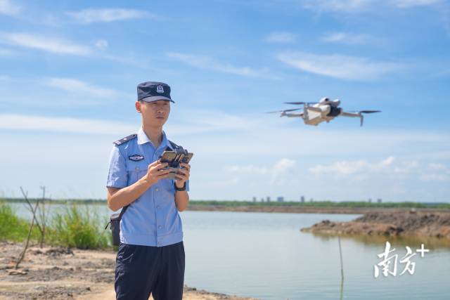 李明霖用無(wú)人機(jī)航拍紅樹林,觀察記錄保護(hù)情況。