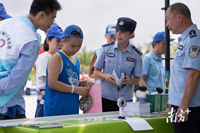 保護(hù)紅樹林生態(tài)系統(tǒng)國(guó)際日,民警們?cè)谡拷袇^(qū)擺攤,科普紅樹林保護(hù)知識(shí)。