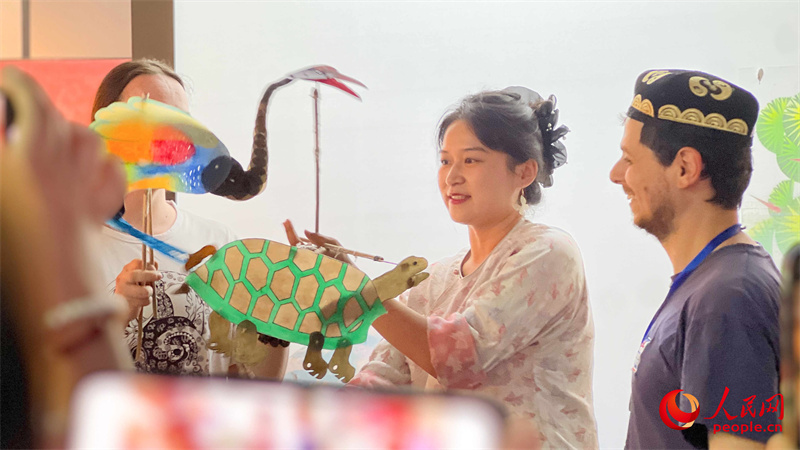 “這是我第一次來新疆,在來之前我很喜歡《吐魯番的葡萄熟了》這首歌,也對新疆充滿了好奇?!痹诓菝佬g(shù)館,俄羅斯翻譯家、現(xiàn)任莫斯科物理技術(shù)學(xué)院中文系副教授羅子毅在皮影戲展示區(qū)駐足觀看并親身體驗了皮影戲的基本技巧?!拔覍W(xué)過表演,也很喜歡歌劇,這趟新疆之行剛開始就能體驗到中國的皮影戲,我對后面的行程充滿了期待。”