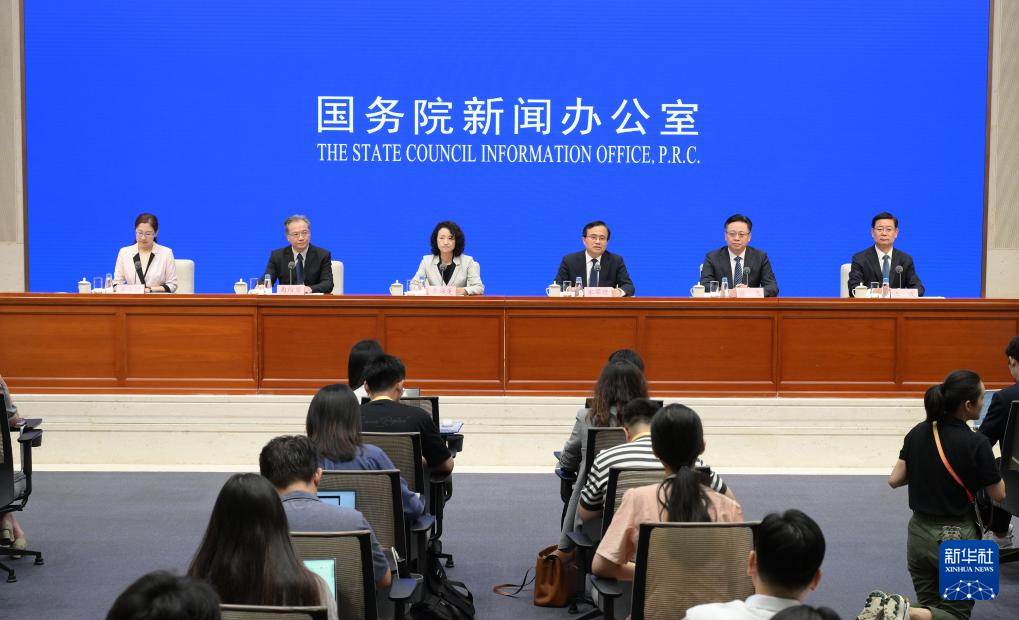 8月16日,國(guó)務(wù)院新聞辦公室在北京舉行新聞發(fā)布會(huì),商務(wù)部國(guó)際貿(mào)易談判副代表李詠箑、山東省副省長(zhǎng)宋軍繼、商務(wù)部國(guó)際貿(mào)易經(jīng)濟(jì)合作研究院副院長(zhǎng)曲維璽、山東省商務(wù)廳廳長(zhǎng)陳飛、青島市副市長(zhǎng)王波介紹2024年跨國(guó)公司領(lǐng)導(dǎo)人青島峰會(huì)有關(guān)情況,并答記者問。新華社記者 李賀 攝