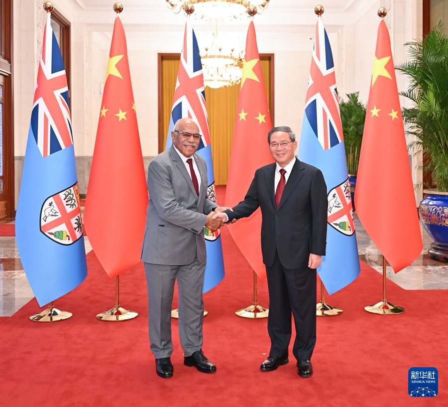 李強(qiáng)表示,斐濟(jì)是首個同中國建交的太平洋島國,中方一直將斐濟(jì)視為南太地區(qū)最重要合作伙伴之一。習(xí)近平主席將同總理先生舉行會晤,共同擘畫兩國關(guān)系發(fā)展新藍(lán)圖。中方一貫堅定支持斐濟(jì)人民走自主選擇的發(fā)展道路,愿同斐方以明年兩國建交50周年為契機(jī),落實兩國領(lǐng)導(dǎo)人共識,繼續(xù)做彼此信賴、相互支持的真朋友,加強(qiáng)高層和各級別交往,推動中斐全面戰(zhàn)略伙伴關(guān)系健康穩(wěn)定向前發(fā)展,更好造福兩國人民。