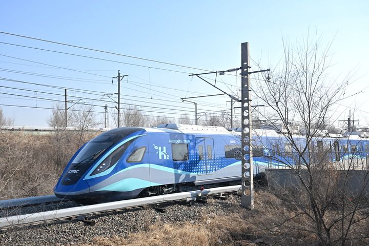 2024年3月21日,我國首列氫能源市域列車在位于長春的中車長客試驗線進(jìn)行運(yùn)行試驗。新華社發(fā)(中車長客股份公司提供)