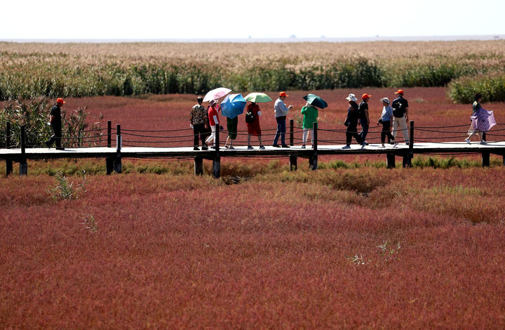 獲得“國際濕地城市”的稱號,盤錦市以紅灘綠葦、鶴舞鷗翔的生態(tài)之美,每年吸引近千萬人次游客觀光旅游。以濕地為品牌,盤錦市不斷培育文旅新業(yè)態(tài)和消費(fèi)新熱點(diǎn)。春季“觀鳥賞花、踏青采摘”,夏季“休閑避暑、暢享田園”,秋季“觀紅灘綠葦、品蟹肥稻香”,冬季“嬉冰雪、泡溫泉、住民宿、過大年”,全時全季全域旅游漸入佳境。