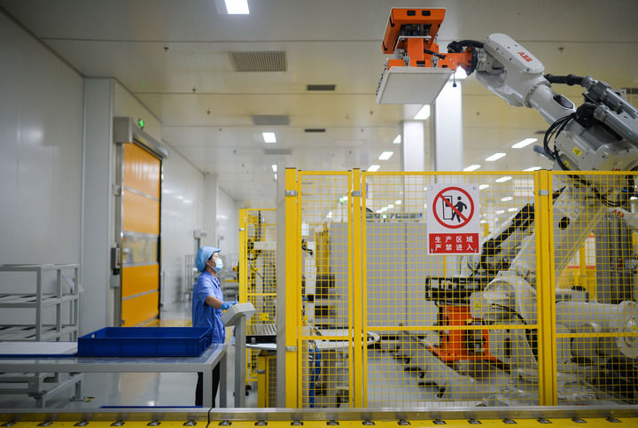 2024年5月19日,工人在位于廣東珠海的緯景儲能珠?!俺珿工廠”工作。該項目是先進液流儲能電池及系統(tǒng)的智能制造中心。新華社記者 李任滋 攝