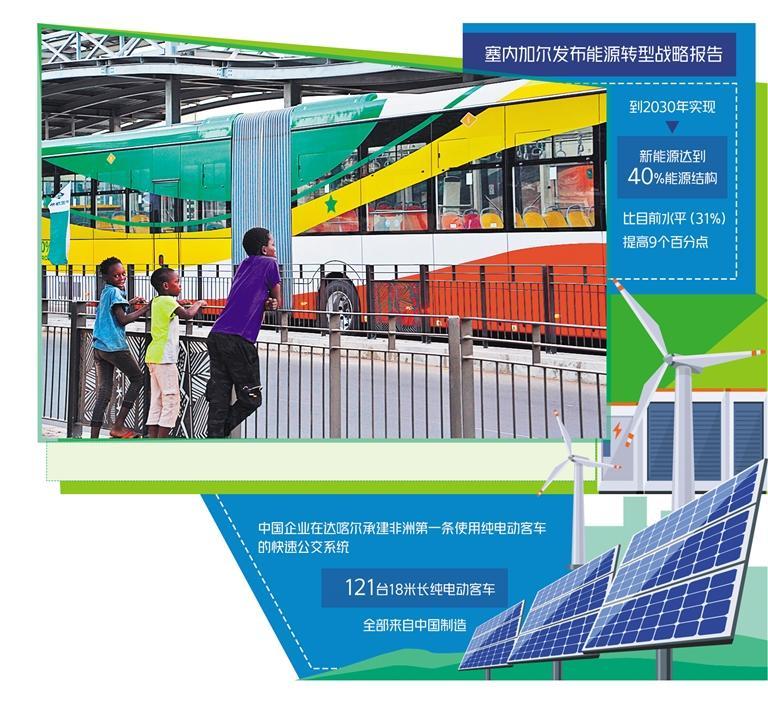 中塞新能源產(chǎn)業(yè)合作持續(xù)深化。中國企業(yè)在達(dá)喀爾承建了非洲第一條使用純電動(dòng)客車的快速公交系統(tǒng)(BRT),121臺(tái)18米長(zhǎng)純電動(dòng)客車全部來自中國制造。由中國企業(yè)承建的20個(gè)車站和維?;匾捕荚O(shè)置有中國制造的光伏系統(tǒng)。
