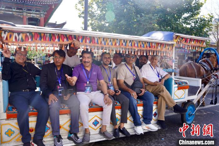 22日,巴基斯坦媒體人乘坐街區(qū)特色的電驅(qū)動(dòng)馬車(chē),參觀游覽民族風(fēng)情街。陳欣怡 攝