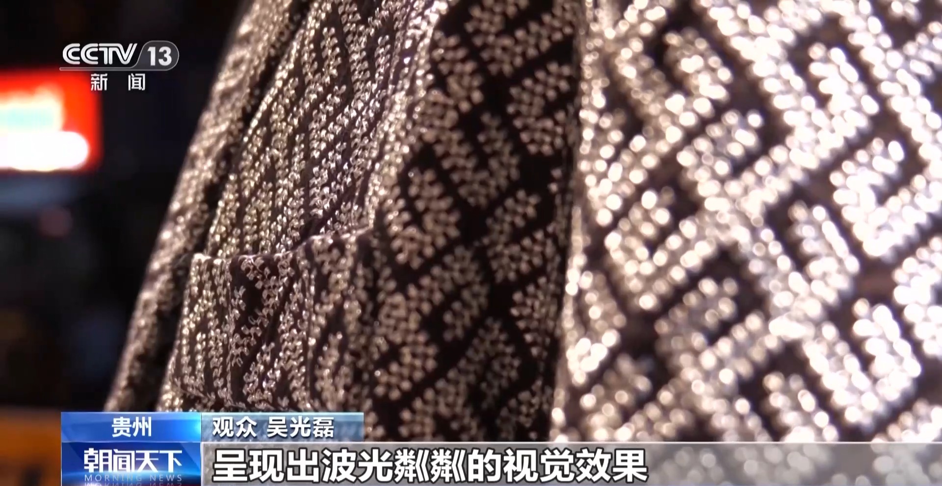 觀眾 吳光磊:錫繡與別的刺繡不一樣。它在場(chǎng)上呈現(xiàn)出波光粼粼的視覺效果。