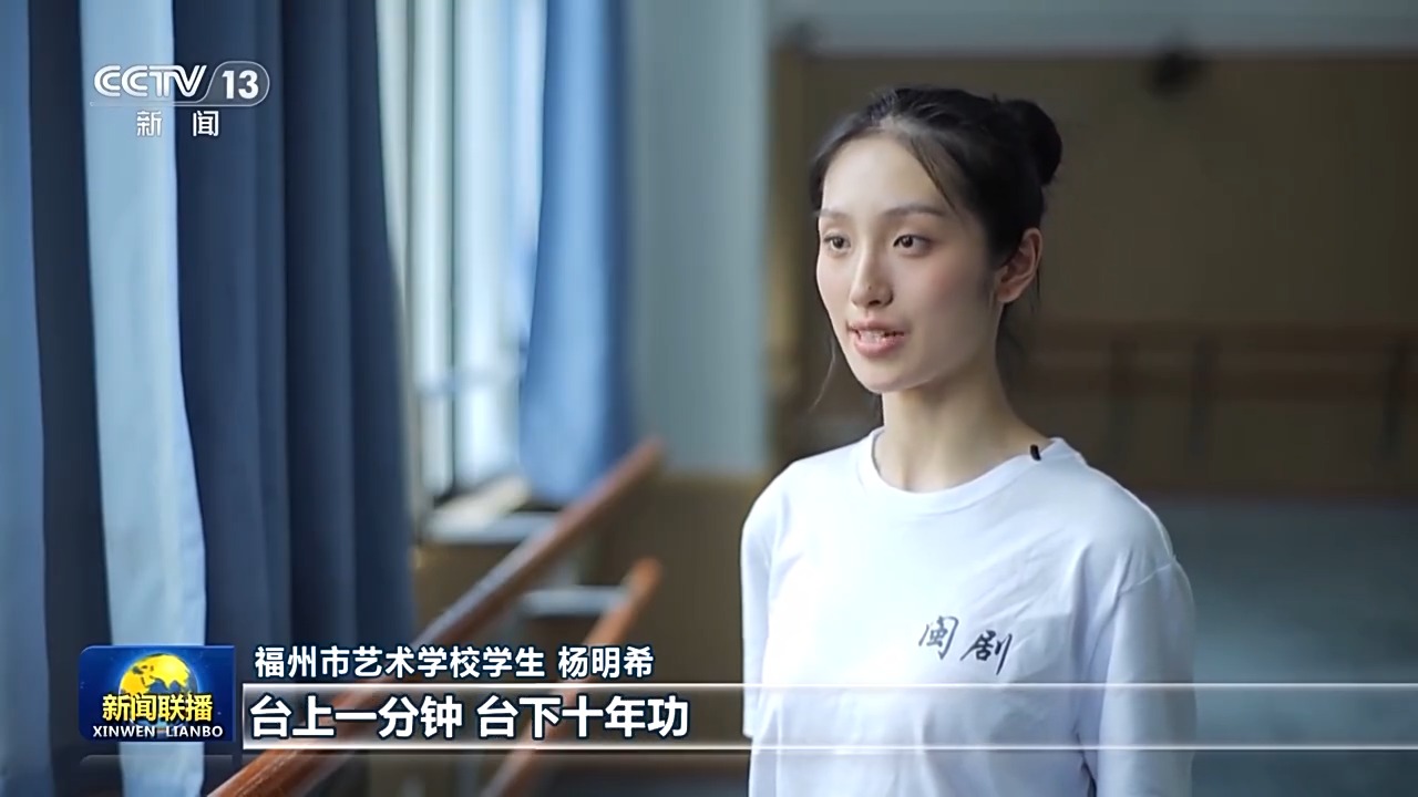 福州市藝術學校學生 楊明希:勤學苦練,振興閩劇,這八個字時刻提醒我們臺上一分鐘,臺下十年功。我們要學好文化,又要學好專業(yè),學閩劇一定要吃苦才能把基本功打實。