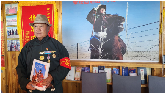 從石頭路走到柏油路,從騎駱駝、馬兒巡邊,到騎摩托車巡邊……圖門的護邊之路走了許多年,他把父輩們守邊護邊的精神一直傳承下去,他說:“作為一名共產(chǎn)黨員,作為一個黨組織信任的‘紅色堡壘戶’,我會守好邊疆安寧,守護好這片綠水青山,服務(wù)好家鄉(xiāng)廣大牧民群眾,帶領(lǐng)大家過上幸福生活!”