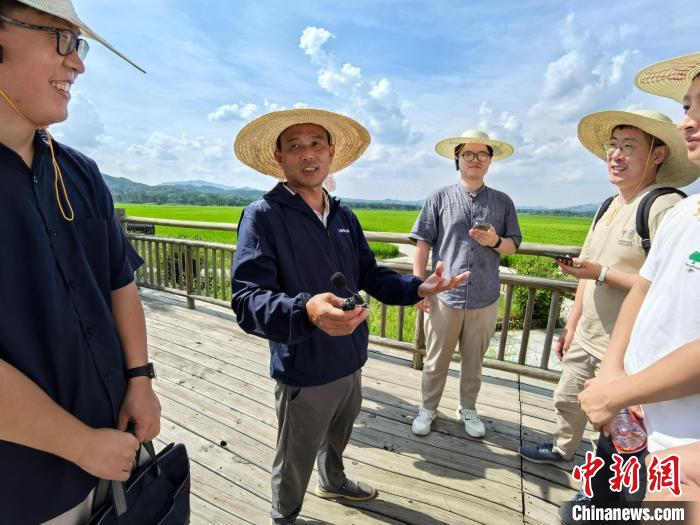 “而今邁步從頭越——長征路上學黨史”網(wǎng)上主題宣傳福建線活動采訪團成員走進汀江國家濕地公園,感受長汀生態(tài)治理成果。中新網(wǎng)記者 張金川 攝
