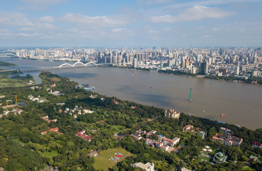 8月20日拍攝的松花江哈爾濱段和太陽島局部(無人機(jī)照片)。
