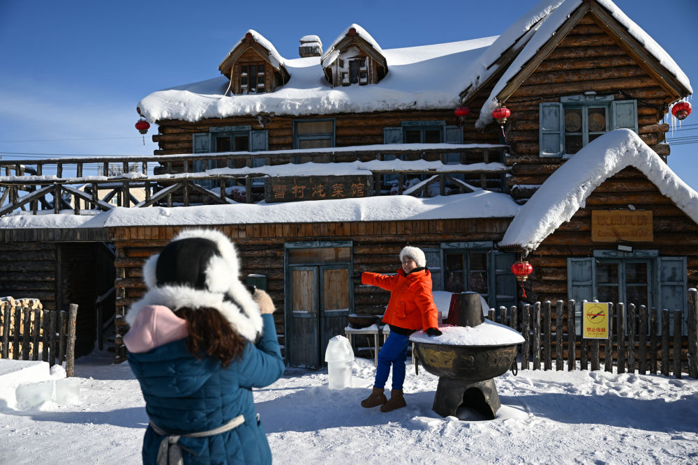 游客在內(nèi)蒙古興安盟阿爾山市游玩(2023年12月14日攝)。