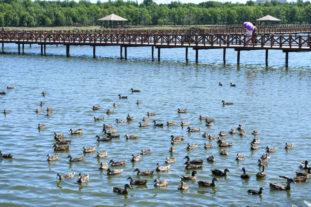 8月26日,游客在吉林省松原市查干湖野鴨島游覽。