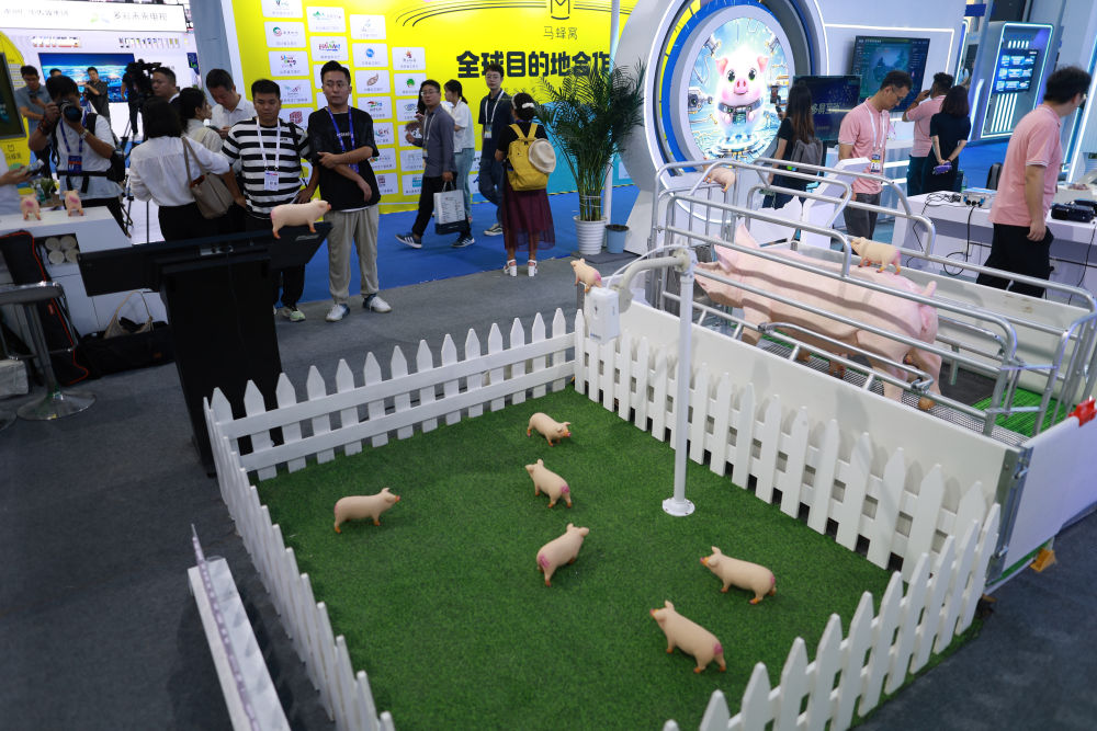 8月28日,觀展者在2024中國(guó)國(guó)際大數(shù)據(jù)產(chǎn)業(yè)博覽會(huì)現(xiàn)場(chǎng)參觀智能生豬全產(chǎn)業(yè)鏈數(shù)智化服務(wù)總平臺(tái)模型。