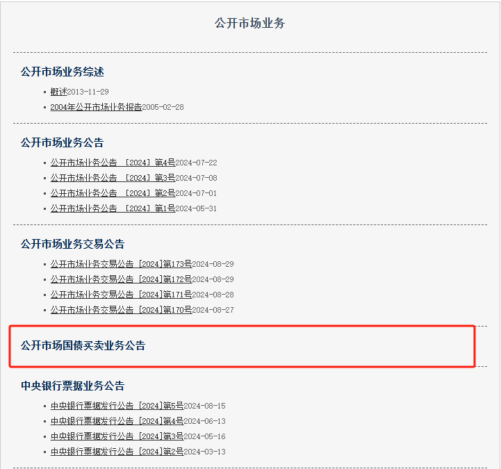 8月28日,中國人民銀行官網(wǎng)“公開市場業(yè)務(wù)”專題頁面上線“公開市場國債買賣業(yè)務(wù)公告”欄目。此次在官網(wǎng)欄目更新,顯示央行已為公開市場國債買賣業(yè)務(wù)做好準備,再次釋放其將在公開市場開展國債買賣操作的信號。