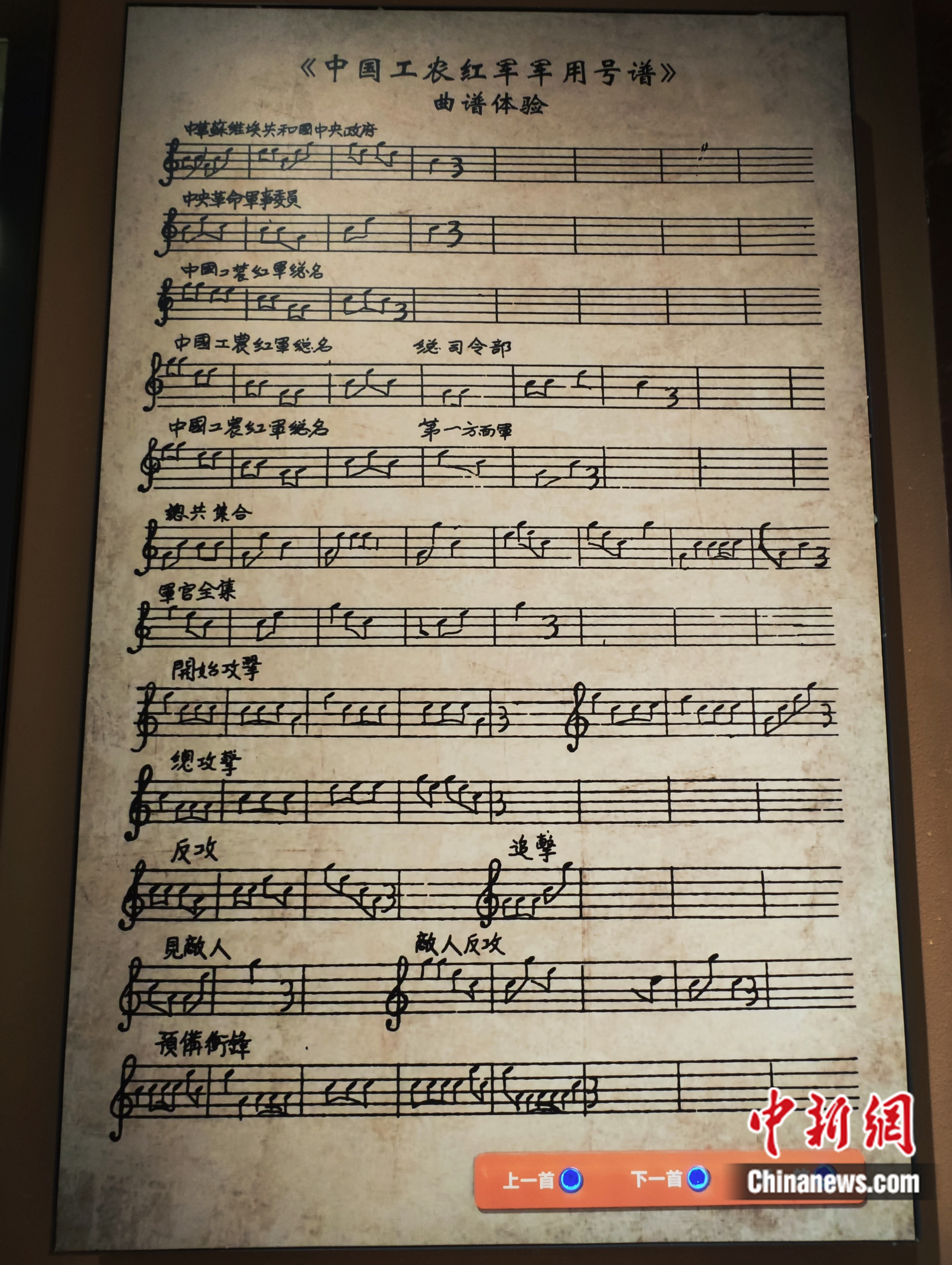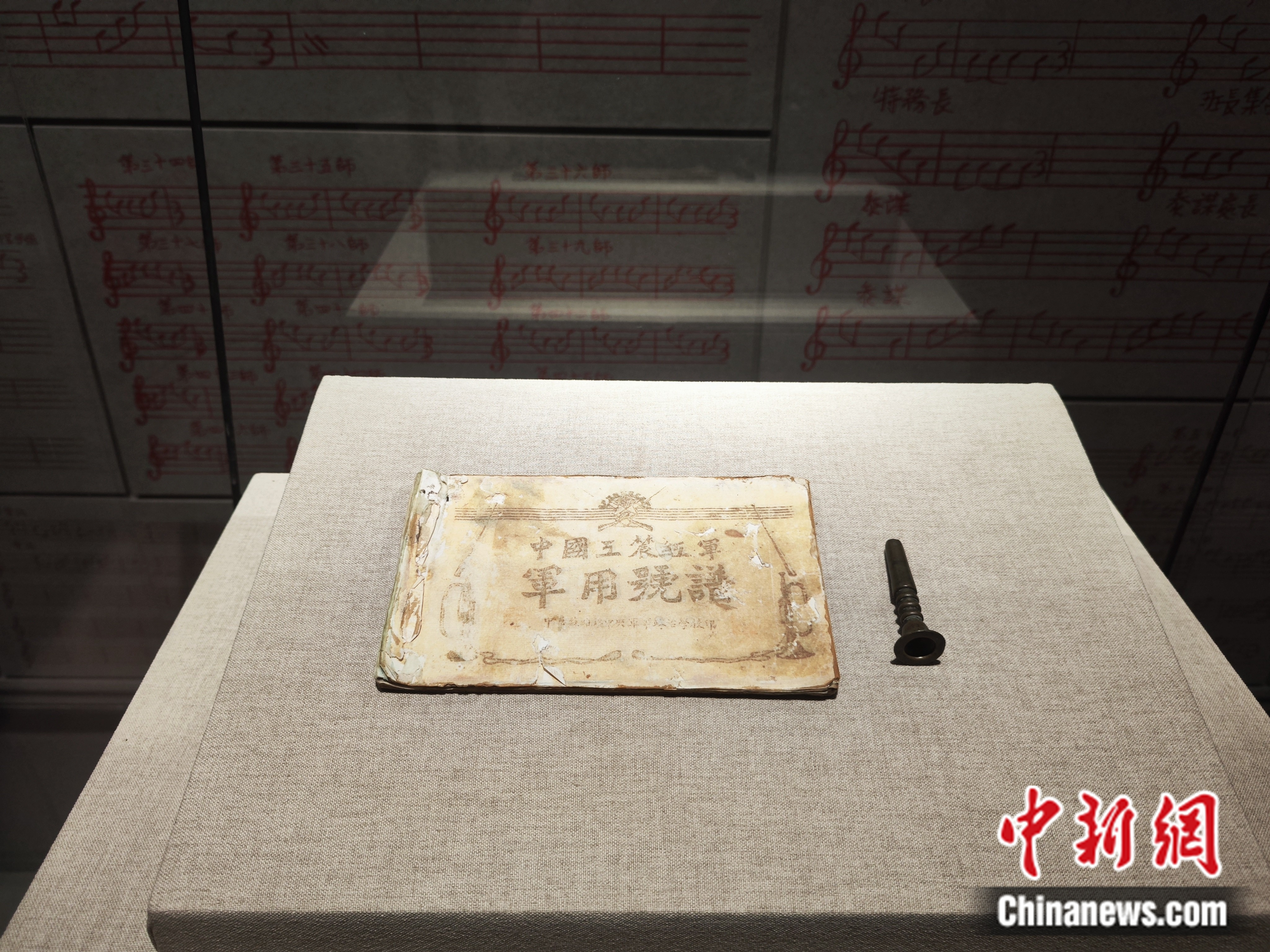 玻璃展柜中,那本用毛邊紙、黑油墨印制而成的《中國(guó)工農(nóng)紅軍軍用號(hào)譜》靜靜躺在那里,滿含歲月的痕跡。