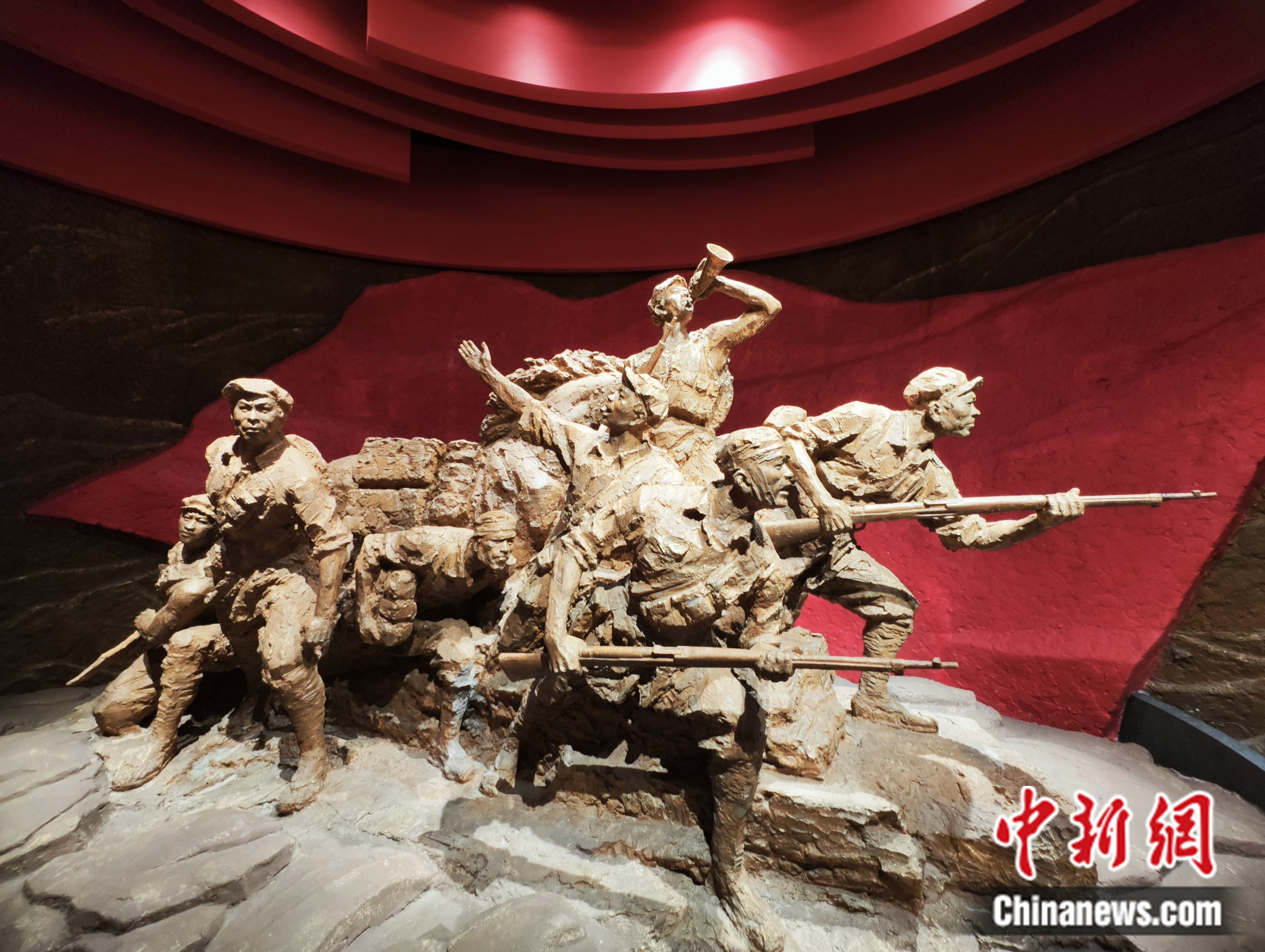 寧化縣長(zhǎng)征精神教育基地內(nèi),一組紅軍戰(zhàn)士的雕塑。劉越 攝