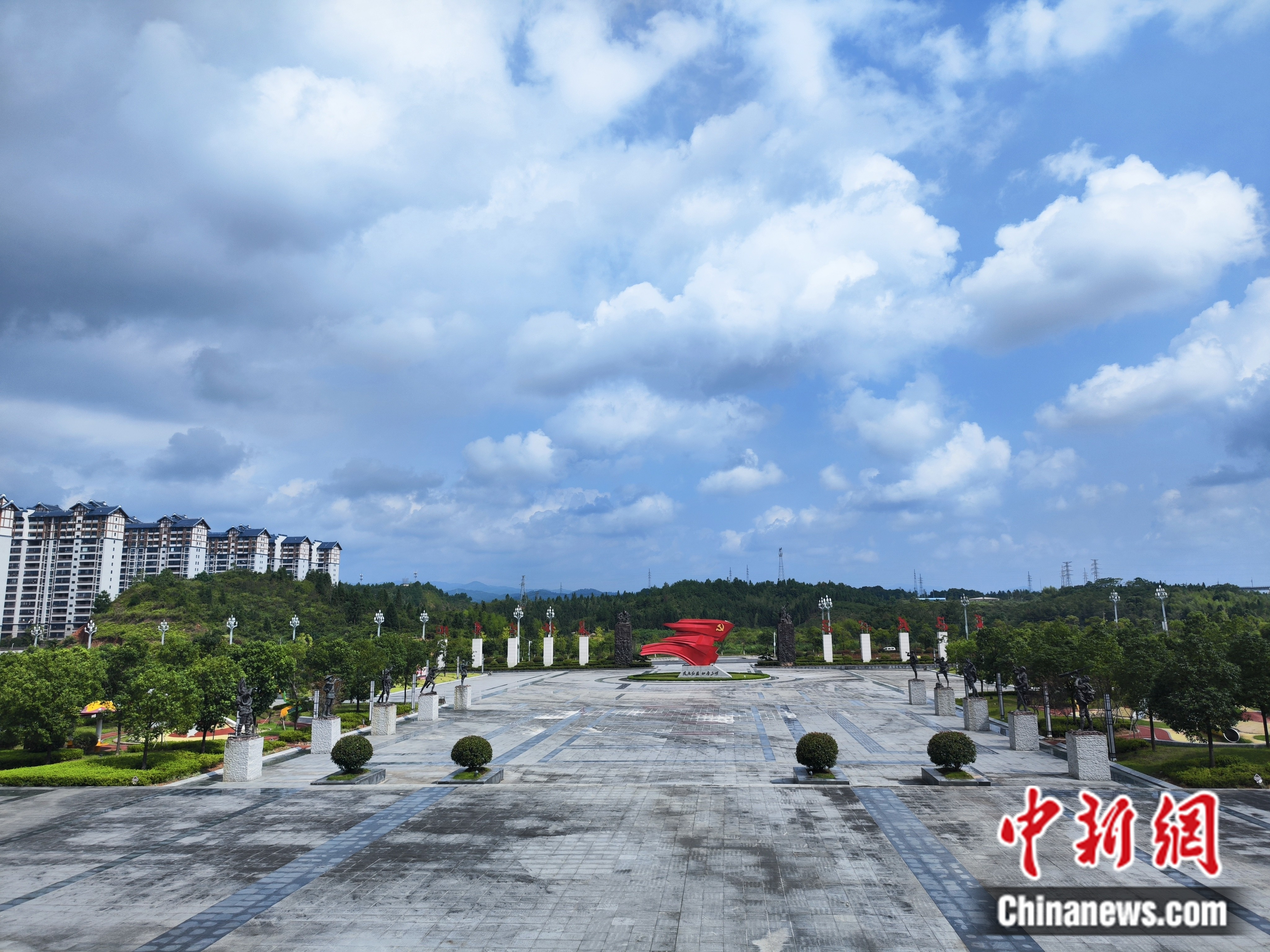 寧化縣長(zhǎng)征精神教育基地外,高樓林立,綠樹成蔭。劉越 攝