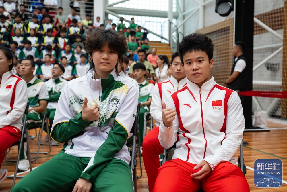 9月1日,內地奧運健兒代表團在澳門奧林匹克體育中心室內體育館與澳門青少年運動員進行互動交流。
