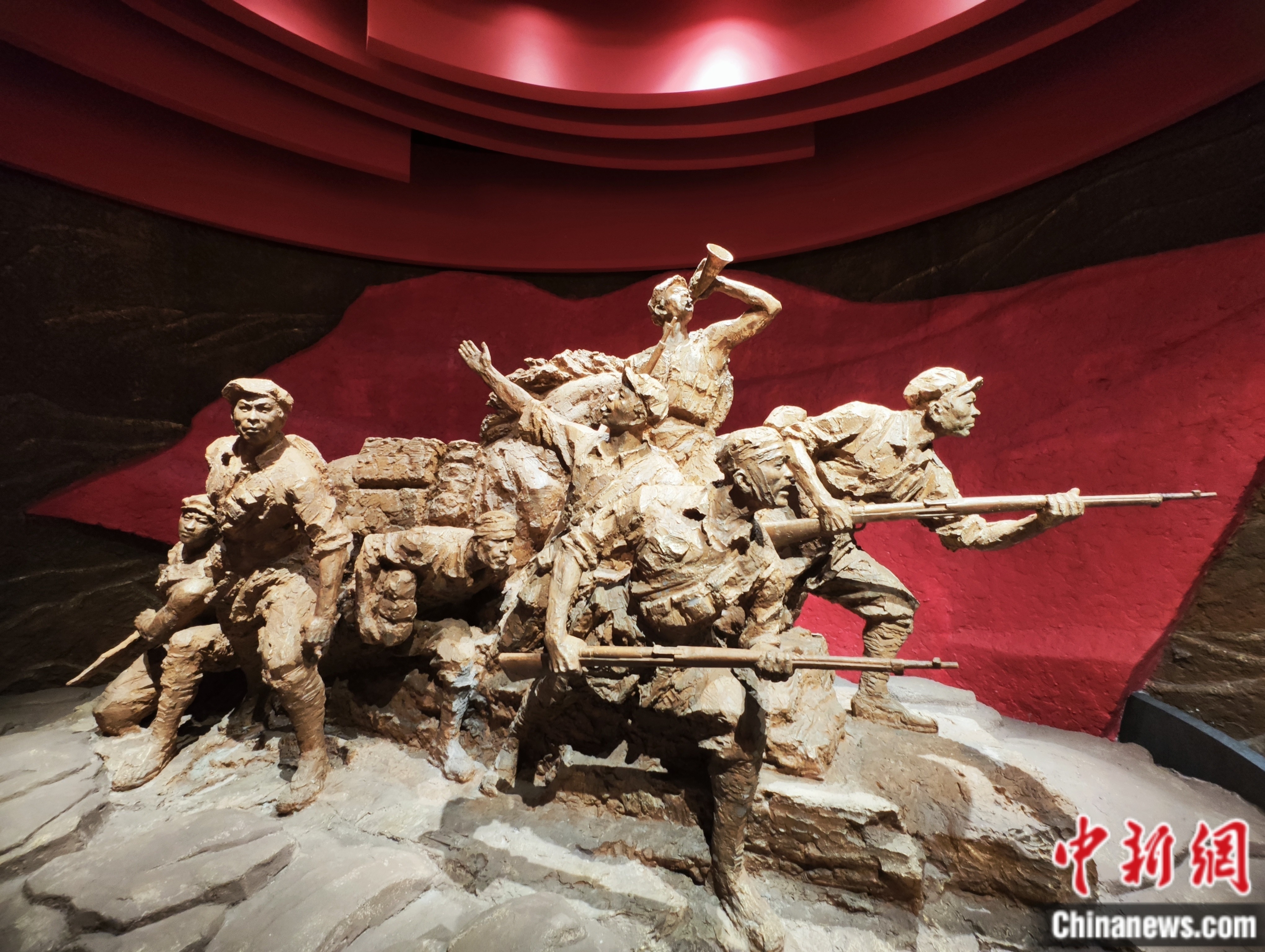 寧化縣長征教育基地內(nèi),一組戰(zhàn)斗中的紅軍雕像。劉越 攝