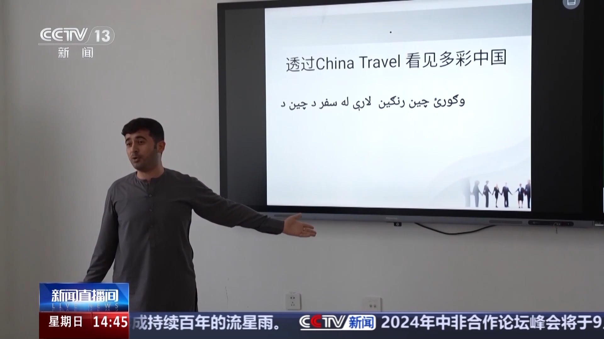 新學(xué)期開學(xué),在河北外國語學(xué)院語言教室,來自不同國家的外籍教師以“透過China Travel 看見多彩中國”為主題為同學(xué)們講授開學(xué)第一課。