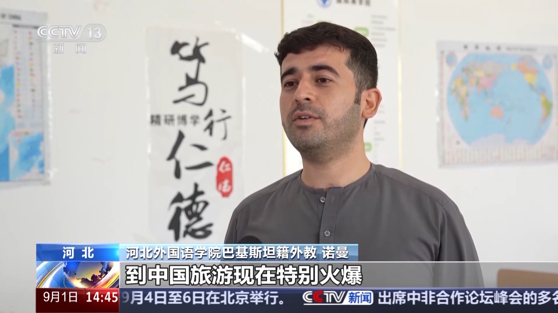 河北外國語學(xué)院巴基斯坦籍外教 諾曼:到中國旅游現(xiàn)在特別火爆,包括巴基斯坦在內(nèi),許多國家的人都來到中國,愛上了中國的美食和文化,感受這里各種便捷舒適的生活方式,我身邊還有很多留學(xué)生朋友都很享受在這里的學(xué)習(xí)生活。