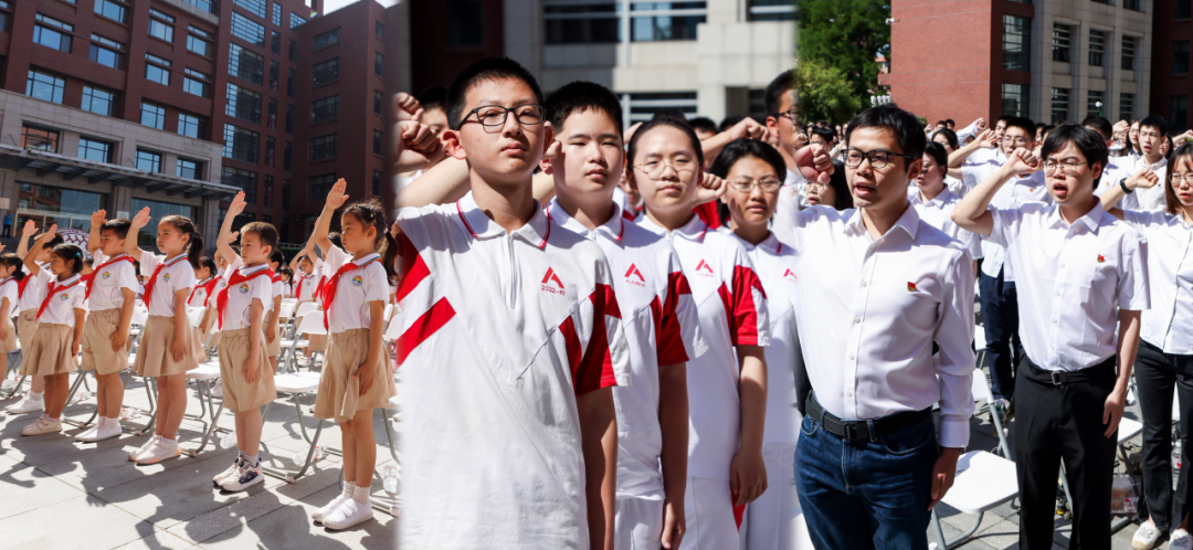 ▲2024年5月30日,中國人民大學(xué)舉行 “紅色基因 薪火相傳” 大中小學(xué)生入黨入團(tuán)入隊集中宣誓活動,300名新發(fā)展黨員、300名新發(fā)展團(tuán)員、300名新入隊隊員參加。