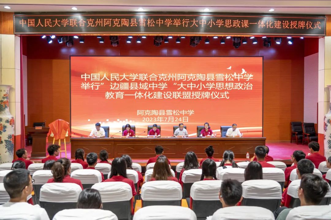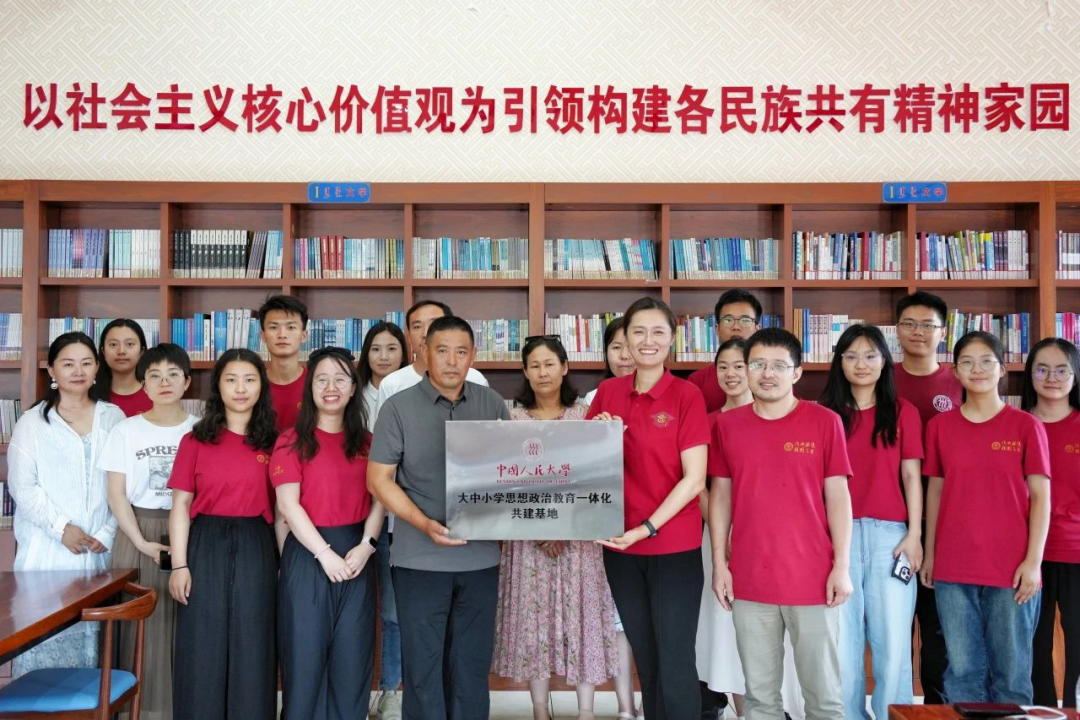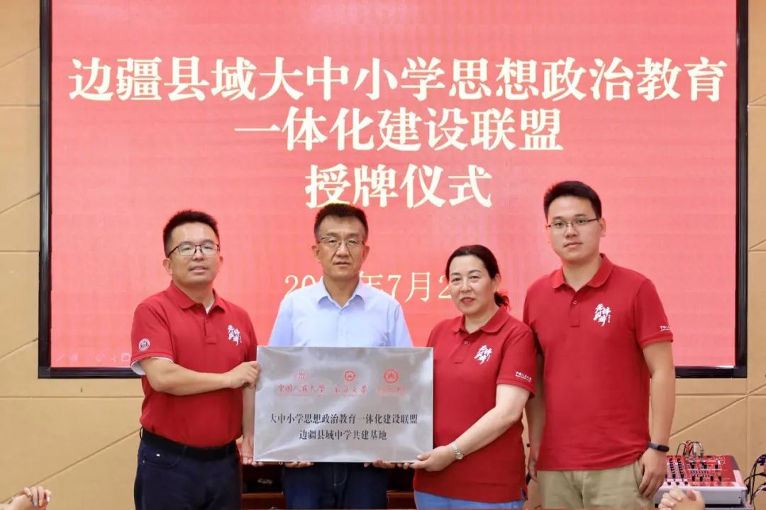 ▲中國人民大學(xué)向邊疆“大中小學(xué)思想政治教育一體化共建基地”授牌。