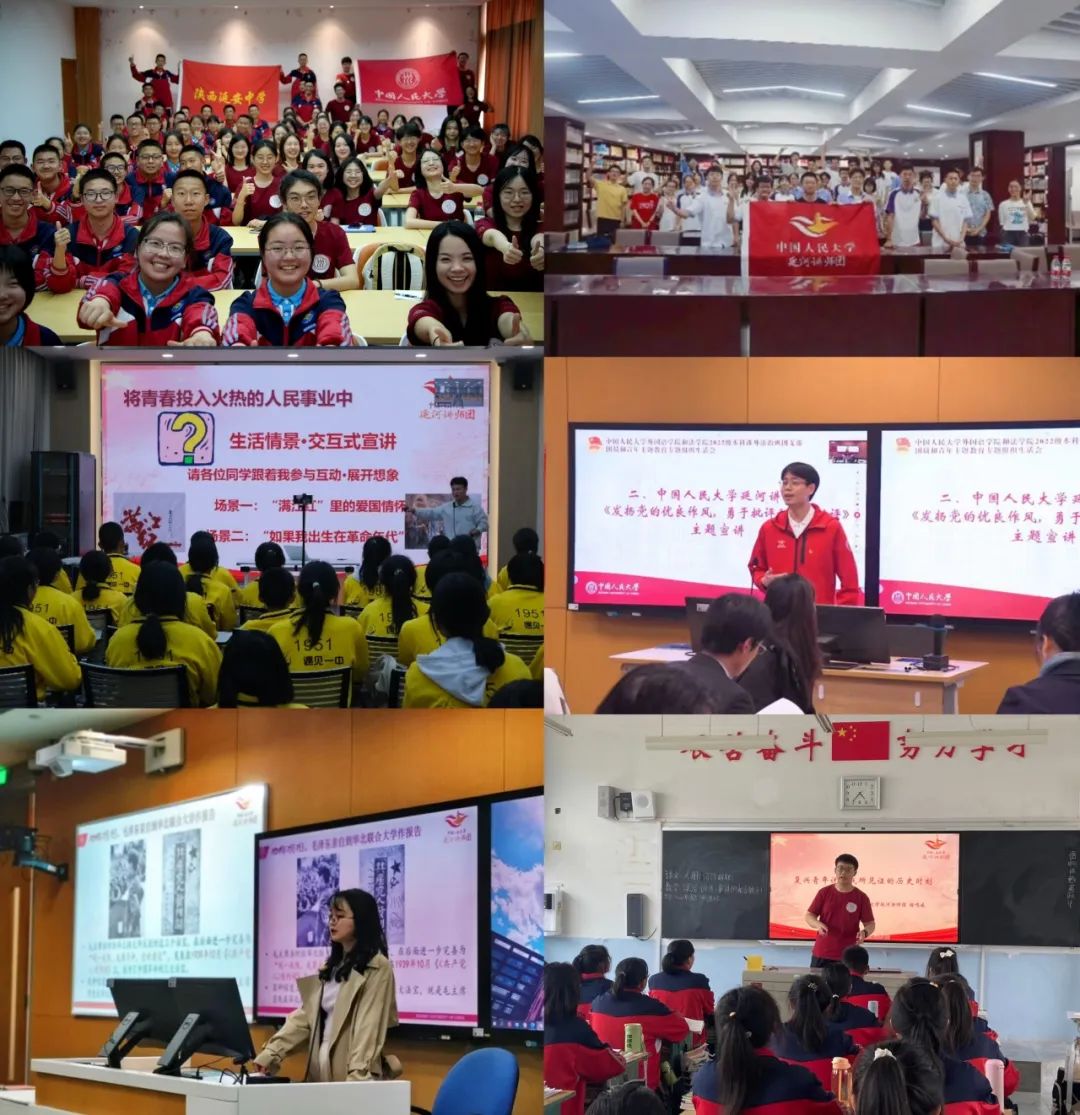 2021年7月,中國人民大學(xué)組建延河講師團(tuán),打造一支大中小學(xué)思政教育一體化的青年宣講“輕騎兵”,以青年聲音宣傳黨的奮斗歷程和偉大成就、光榮傳統(tǒng)和優(yōu)良作風(fēng)、實踐創(chuàng)造和理論創(chuàng)新,講好“黨旗下的思政課”?,F(xiàn)已推出7個專題、116門精品課程,以革命老區(qū)、脫貧摘帽地區(qū)、民族邊疆地區(qū)中小學(xué)校為重點,開展宣講活動600余場,覆蓋超過170萬人次、3000所學(xué)校。