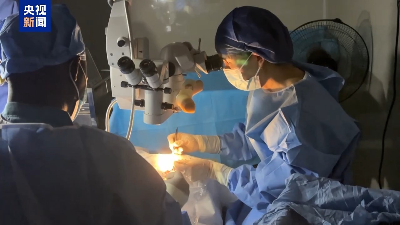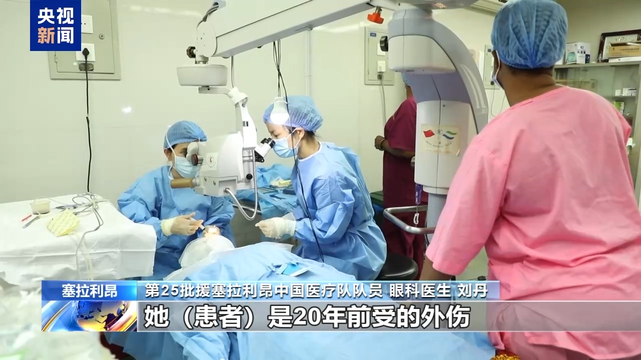 第25批援塞拉利昂中國醫(yī)療隊隊員 眼科醫(yī)生 劉丹:她(患者)是20年前受的外傷,然后角膜帶斑翳,就是虹膜粘連,很難的一個白內(nèi)障(手術(shù))。這里的白內(nèi)障都是好重的,是那種完全看不見的。