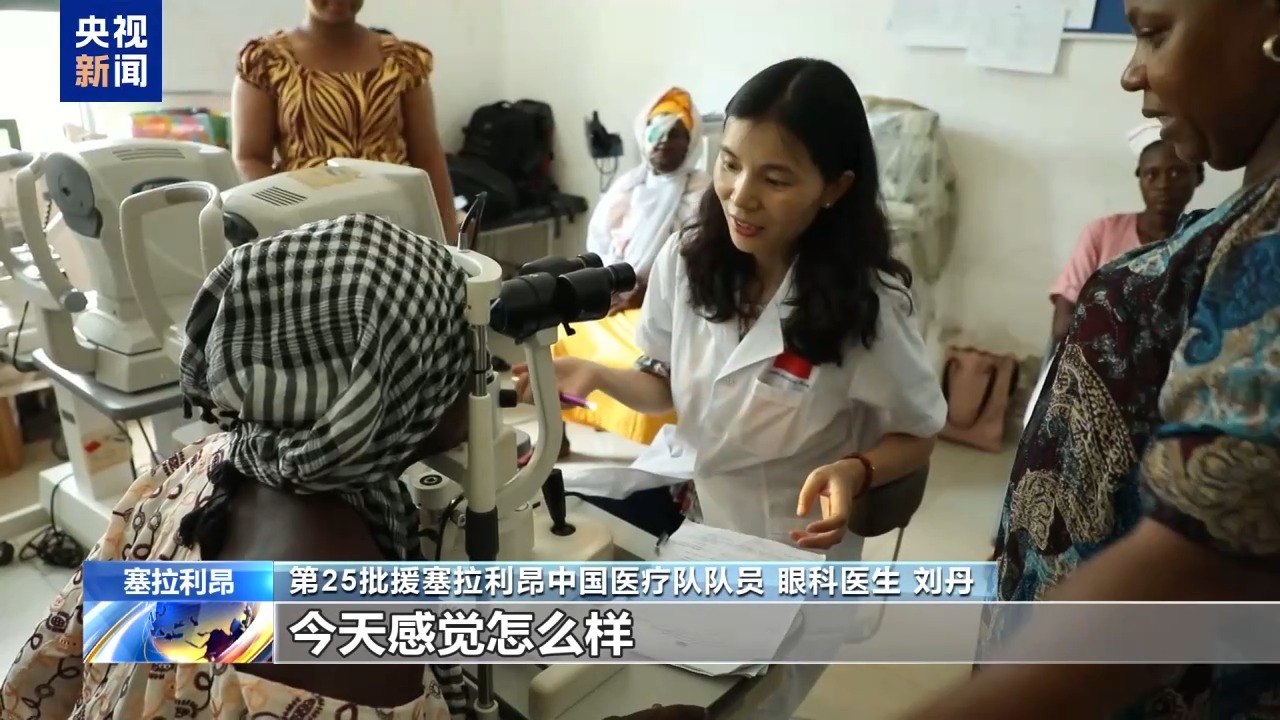 第25批援塞拉利昂中國醫(yī)療隊隊員 眼科醫(yī)生 劉丹:這是昨天一個(接受)白內(nèi)障手術(shù)的病人,她術(shù)前的視力只能看見眼前的手在動,手指頭都分辨不太清楚。今天一打開(紗布)視力是0.3,我覺得過幾天視力還會好很多。