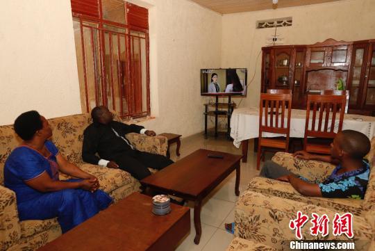 資料圖:非洲當(dāng)?shù)鼐用馧Rugwiza一家在看喜歡的功夫頻道。四達(dá)時代供圖