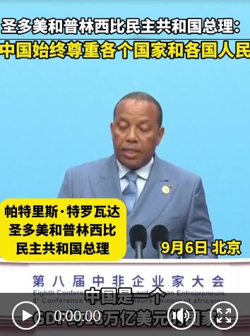 圣多美和普林西比民主共和國(guó)總理帕特里斯·特羅瓦達(dá)6日在第八屆中非企業(yè)家大會(huì)開幕式上說(shuō),中國(guó)是個(gè)大國(guó),而圣多美和普林西比人口只有23萬(wàn)?!拔医裉煊袡C(jī)會(huì)在這里發(fā)言,體現(xiàn)了中國(guó)始終尊重各個(gè)國(guó)家和各國(guó)人民,共建、共享繁榮和平世界,共筑中非命運(yùn)共同體?!?/p>