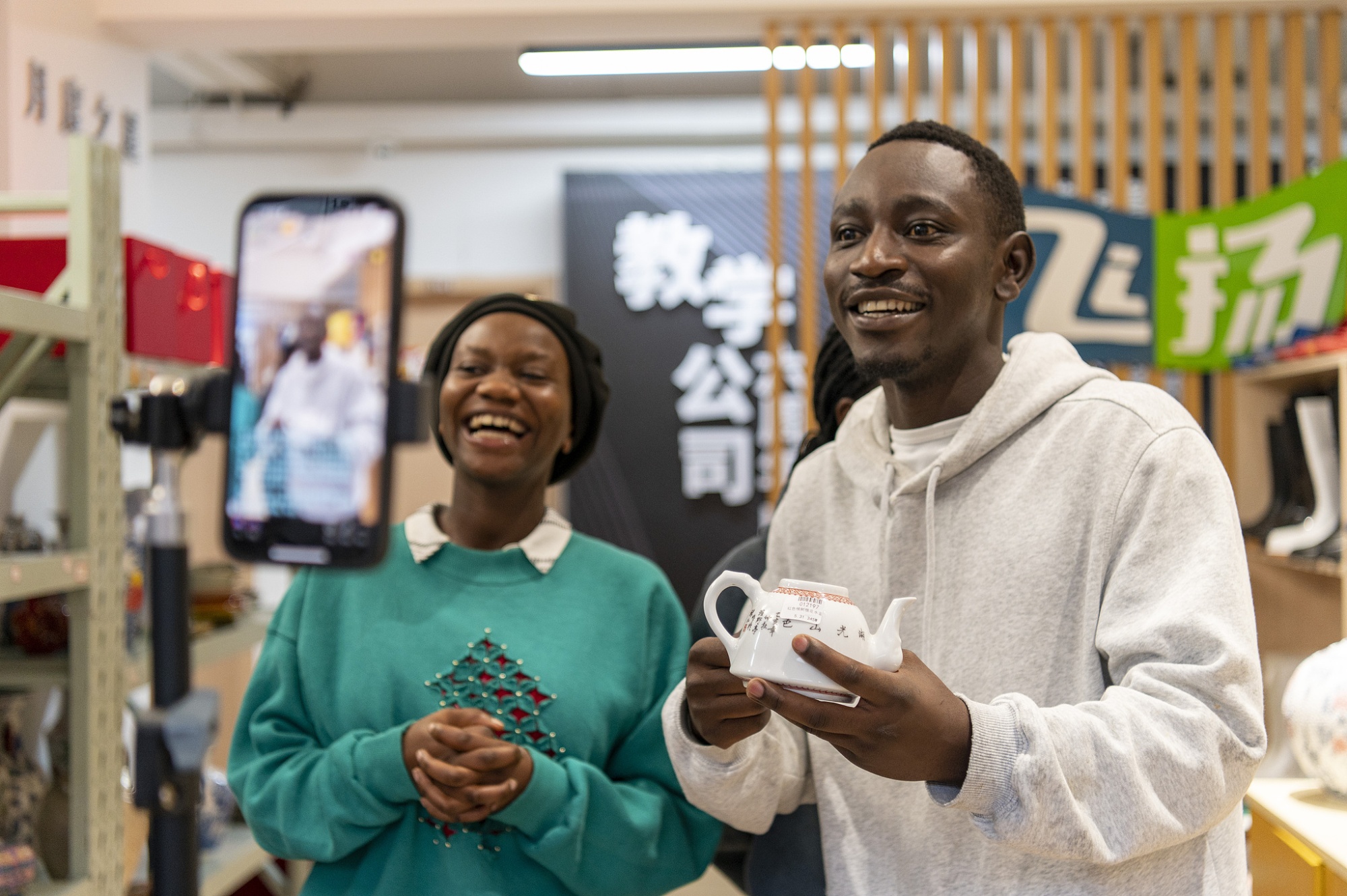 來自盧旺達的非洲留學生正在認真練習中文“直播帶貨”