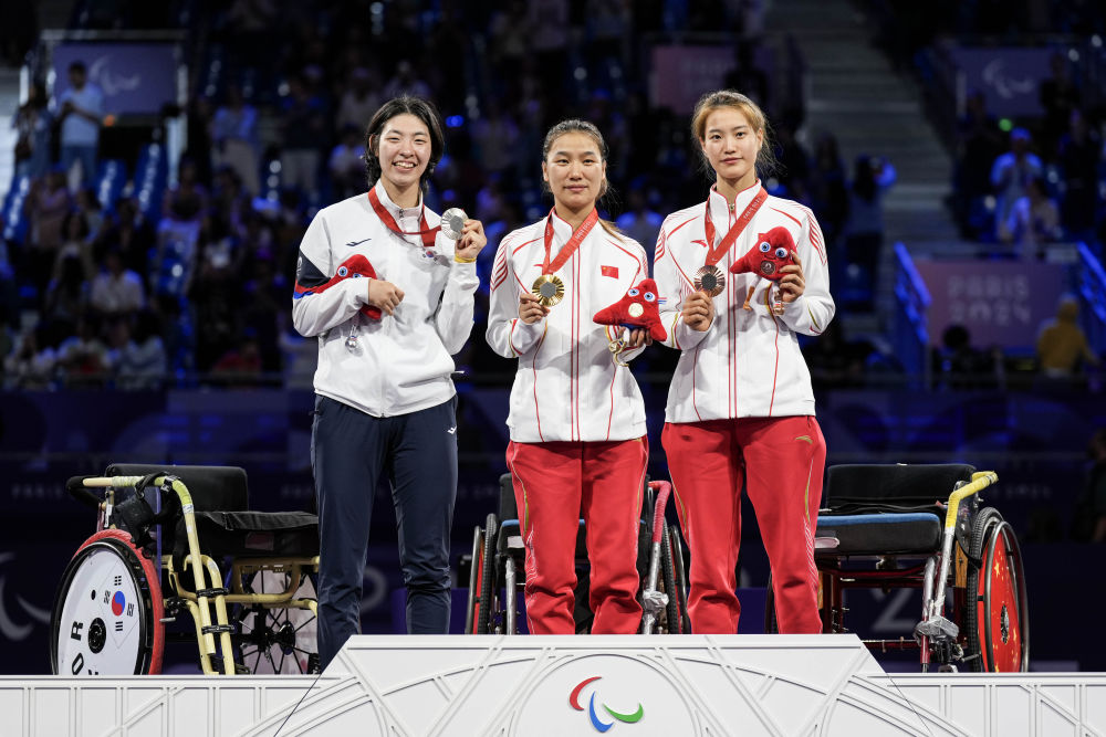 輪椅擊劍賽場迎來男、女重劍個人項目的對決。在男子重劍個人A級比賽中,孫剛憑借穩(wěn)健發(fā)揮,以15:12擊敗英國選手皮爾斯·吉利威爾,贏得金牌。陳遠(yuǎn)東在女子重劍個人A級比賽中技壓群芳,以15:6輕取韓國選手權(quán)孝敬奪冠。