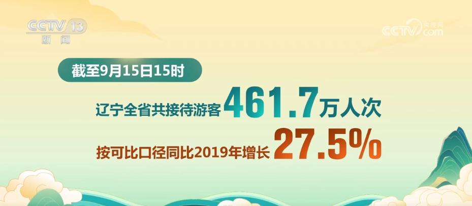 來自遼寧省文旅廳的消息,據(jù)多家商旅平臺數(shù)據(jù)預(yù)測顯示,15日也就是中秋假期第一天,遼寧省迎來了游客高峰。據(jù)統(tǒng)計,截至15日15時,遼寧全省共接待游客461.7萬人次,按可比口徑同比2019年增長27.5%;實現(xiàn)旅游綜合收入32.8億元,按可比口徑同比2019年增長29.1%。