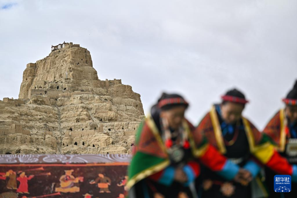 在西藏阿里地區(qū)札達縣古格王國遺址腳下,當?shù)卮迕癖硌荨靶琛保?月11日攝)。