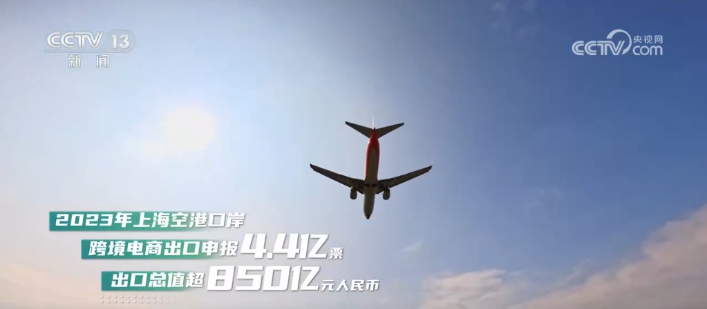 2023年,上海空港口岸跨境電商出口申報4.4億票,出口總值超850億元人民幣。